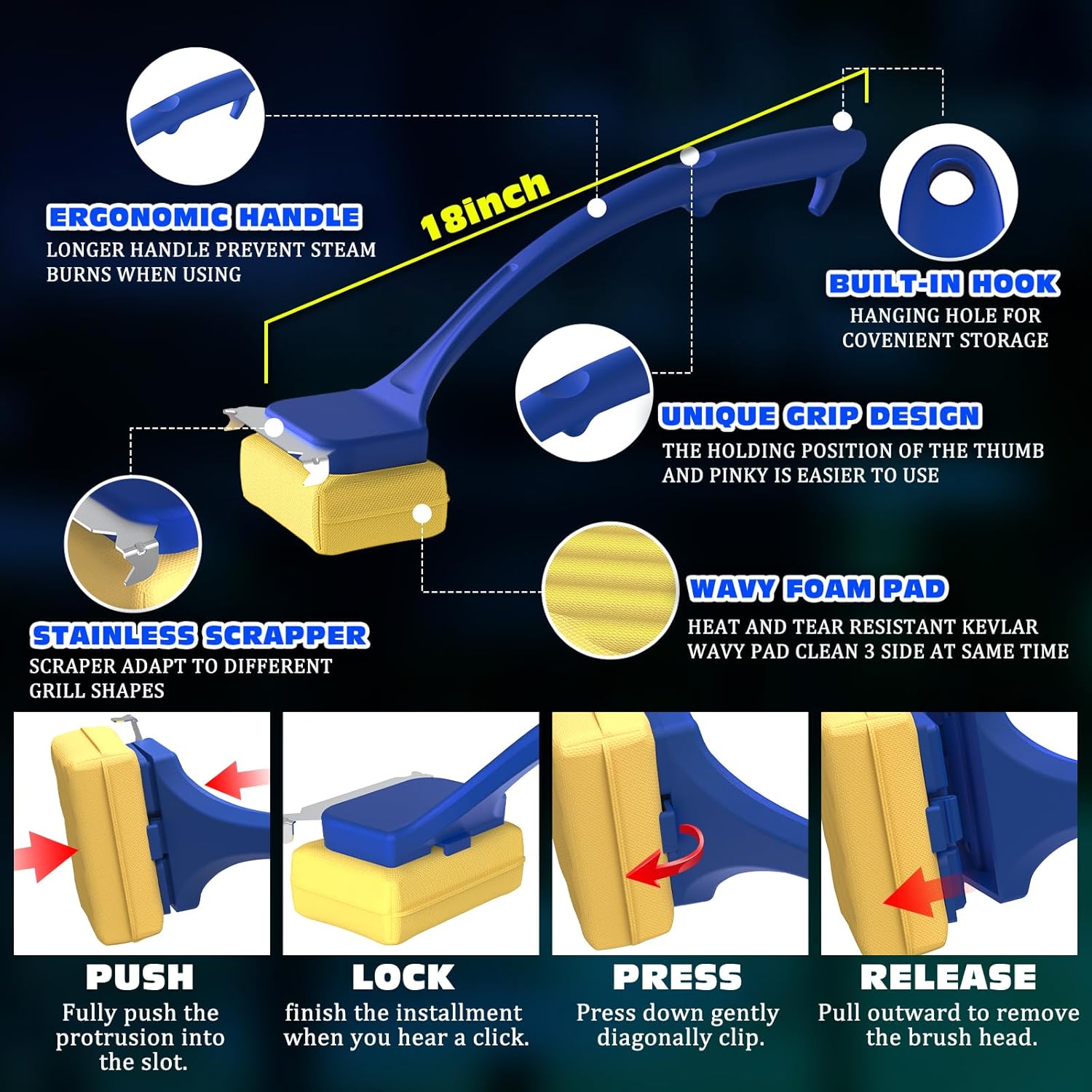 - The brush head is constructed from high-quality, heat-resistant Kevlar fabric capable of withstanding temperatures up to 600°F. This specially made materials meet the requiremnet who want durable and abrasion-resistant scrubbing for consistently clean grills. The detachable brush head is dishwasher-safe and features a secure clip mechanism for added stability. After cleaning, the brush can be hung to dry, ensuring long-term usability.