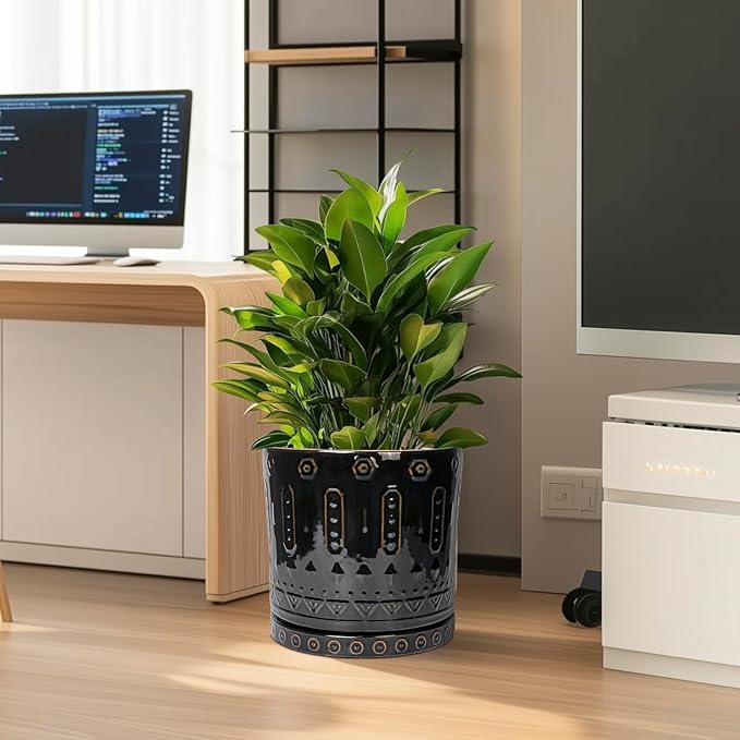 - Plant Pots with Drainage Holes: The ceramic flower pot with drainage holes and saucers ensures good water flow and air circulation, keeping your plants growth while avoiding excess water from spilling. Equipping a mesh pad can avoid soil from flowing out of the ceramic pot for plants and contaminating your surface