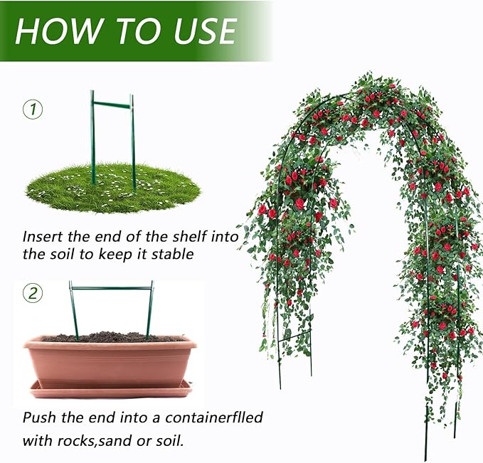 - Multi-functional Design:The green arch trellis can be assembled into two forms: 55.1inches wide by 94.5 inches high,or 91.2 inches wide by 76.8 inches high,easily blending into various scenarios