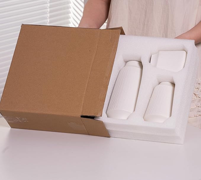 - Specification: There are 3 vases in a set, packaged using a box, the size of the package is 11.42*5.12*25.5 inches, weighing 1.35 kg.Each vase is packaged securely in Styrofoam to ensure a safe delivery, and avoid breakage in transit. These vases come in a sturdy box, ready to be wrapped and gifted to a loved one!