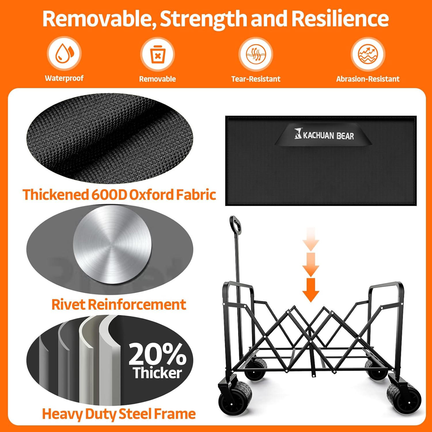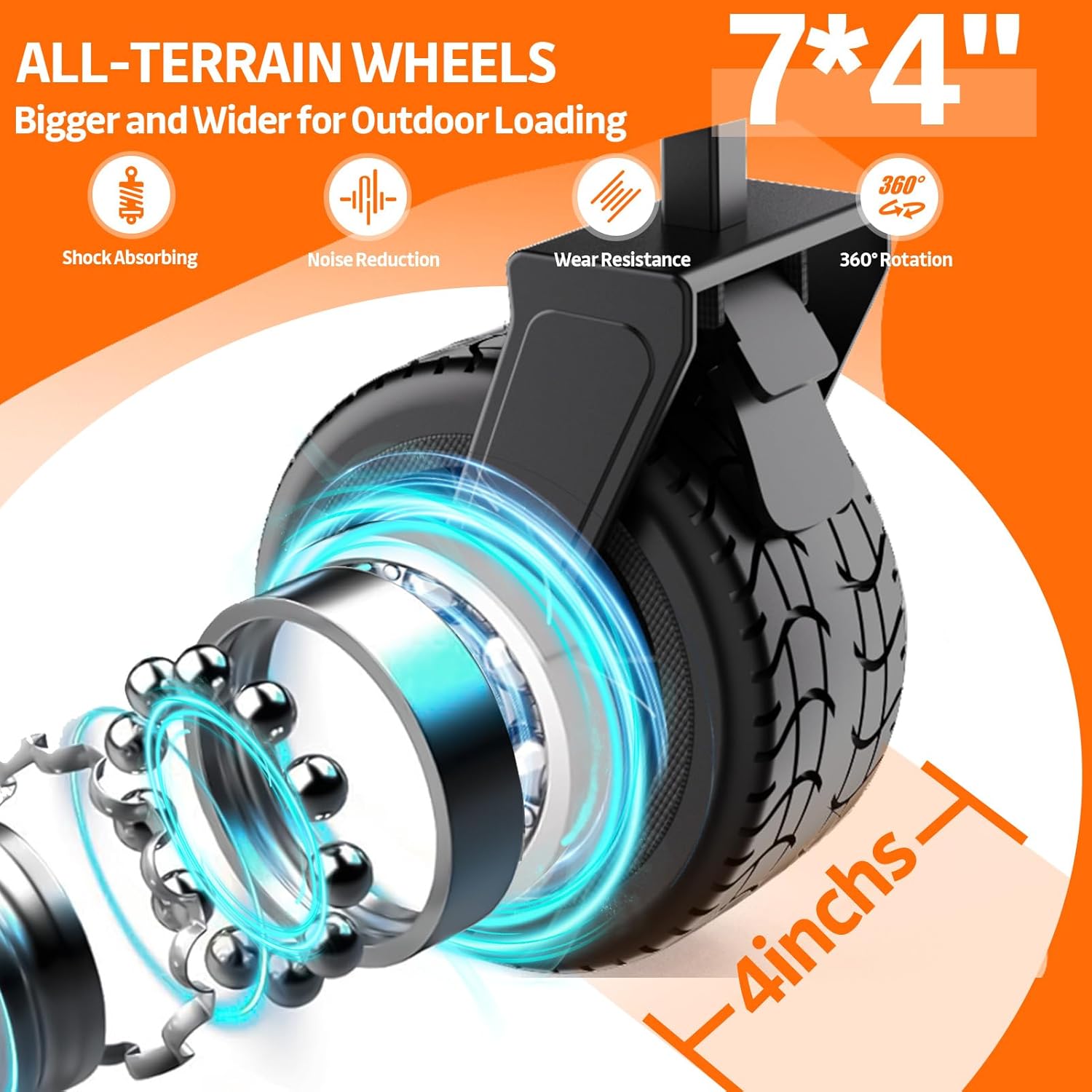 - All-Terrain Beast for Sand & Beyond:Dominate rugged landscapes with our beach wagon with big wheels for sand! Four 7”x4” wide PVC wheels, reinforced with anti-slip treads and ball bearings, glide effortlessly over sand, grass, and uneven terrain. The collapsible wagon’s 360° rotating handle and front-wheel foot brakes ensure precision steering and stability on slopes. Built to outlast competitors, these wagons carts are your go-to for adventure-ready mobility.