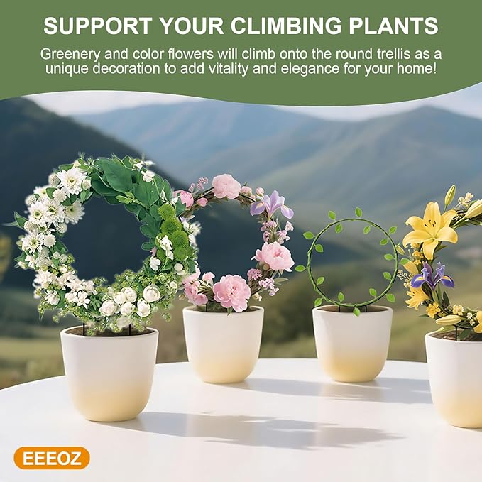 - 【Complete Plant Support Kit】 - Includes 8 sturdy Circle trellis for potted plants + 20 reusable plant ties - everything needed to train vines and climbing plants