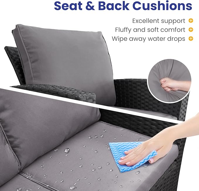 - Durable & Strength Structure:The patio conversation set is made of thick, high-quality rattan material that is weather-resistant, sturdy, and crack-resistant. This patio furniture set also features a powder-coated steel frame as its core for extra strength. Each seat can hold up to 310 lbs
