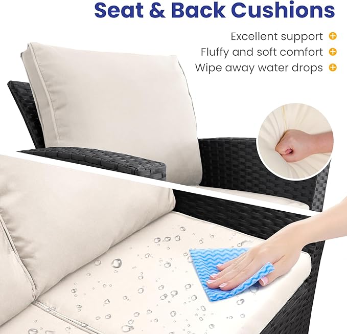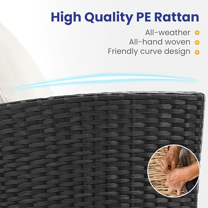 - Durable & Strength Structure:The patio conversation set is made of thick, high-quality rattan material that is weather-resistant, sturdy, and crack-resistant. This patio furniture set also features a powder-coated steel frame as its core for extra strength. Each seat can hold up to 310 lbs