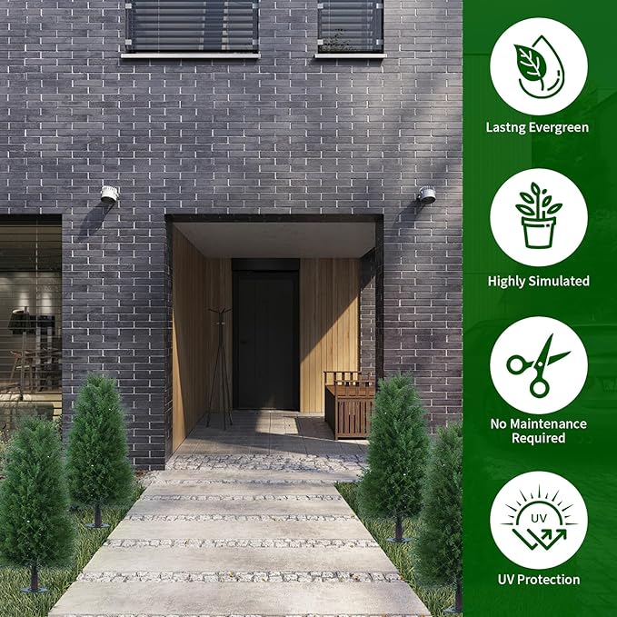 - Easy Setup with Reinforced Ground Spike: Designed with a convenient ground spike, this UV-resistant artificial cypress topiary is incredibly easy to set up. Simply place it in soil, a planter, or a decorative pot to instantly enhance your space with greenery that looks fresh year-round.