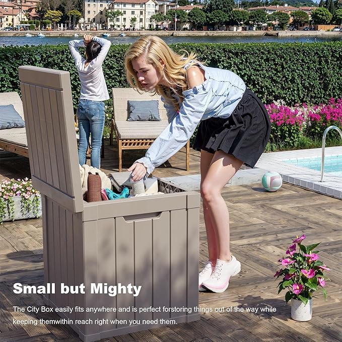 - TRANSFORM YOUR SPACE: Whether used indoors as a laundry storage solution or outdoors for patio items like cushions, garden tools, this patio storage box excels. Its multi-functional design makes it suitable as a side table, patio seat, storage bench, or footstool