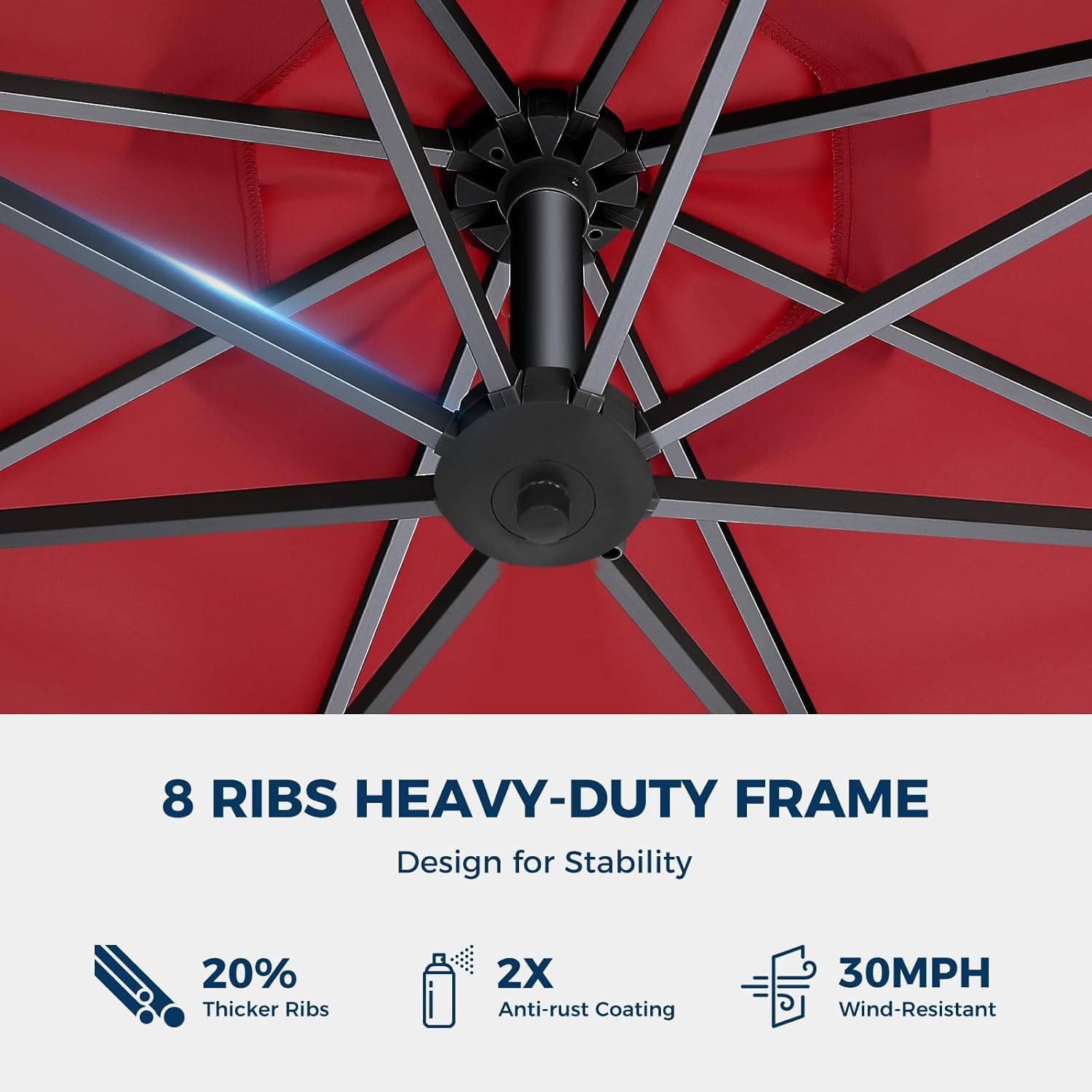 HOMSHADE 10ft Solar Lights Offset Cantilever Patio Umbrella with Light and Base, LED Lighted Offset Hanging Patio Outdoor Market Umbrella UPF50+ UV Protection with Easy Tilt and Crank, Red