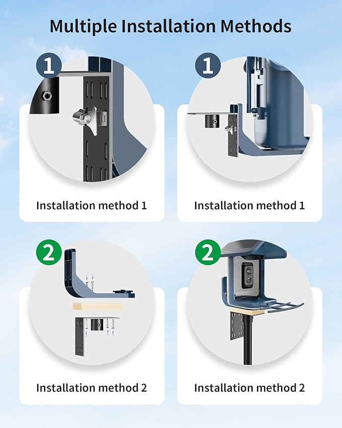 - 【Easy Installation】This bird feeding station reaches a total height of 60 inches and comes with 6.5-inch 5-prong base, 2 x connecting pole, and an L-shaped plate. The slip-in connection method allows for easy assembly, similar to stacking building blocks. Installation typically takes 20 to 40 minutes and no need extra tools. This user-friendly design ensures that anyone, from young enthusiasts to seniors, can set it up effortlessly.