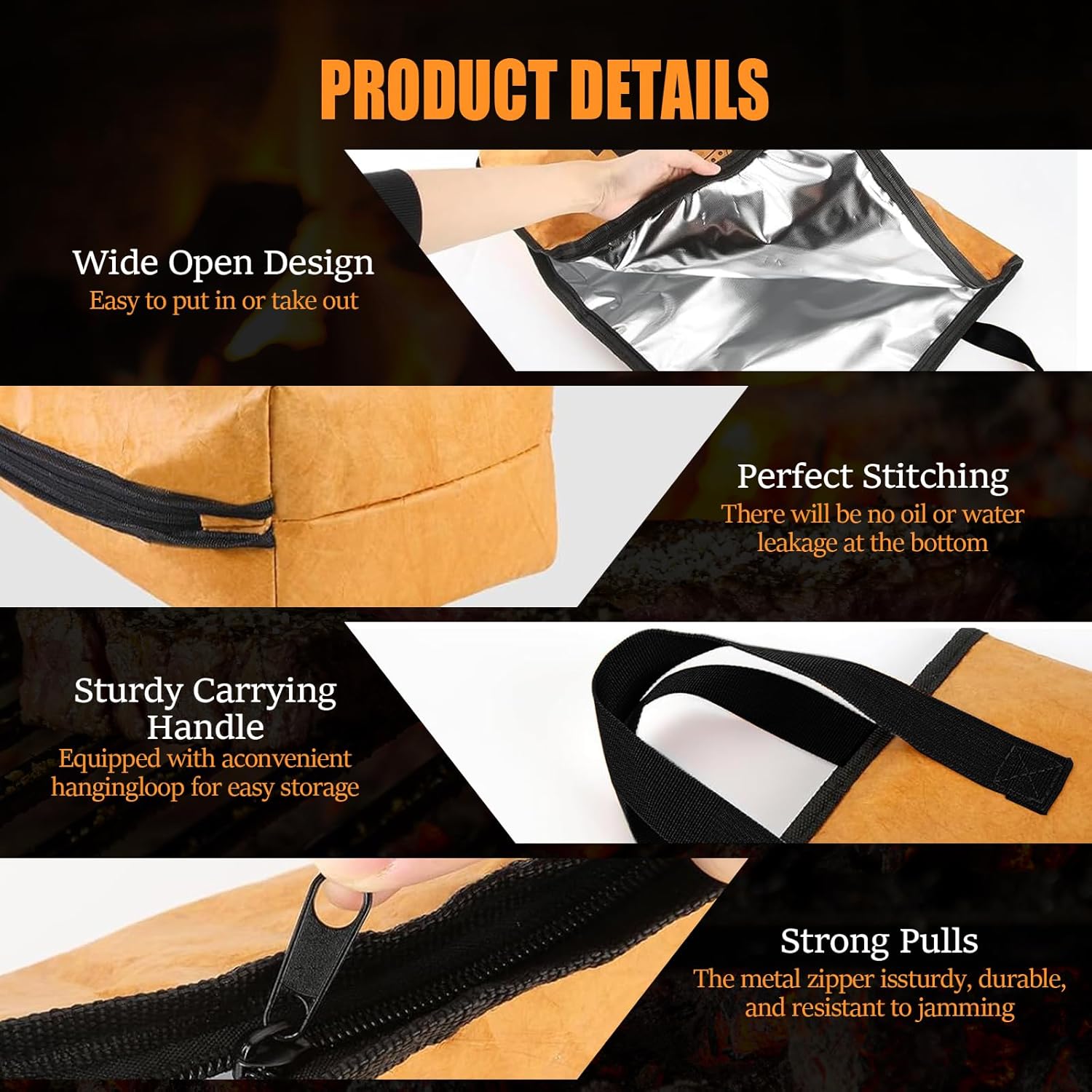 - 【Portable & Leakproof Design】: Crafted for convenience, this smoker accessories bag is lightweight, foldable, and highly portable, making it perfect for BBQs, camping, and outdoor events. The leakproof design ensures no oils or liquids seep through, and the durable zipper keeps your meats secure, preventing spills during storage or transport.