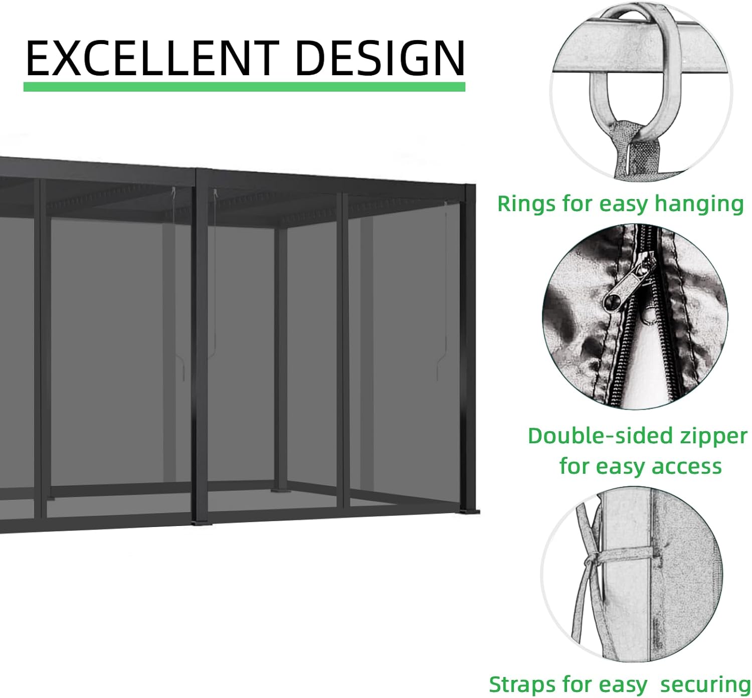 12x20FT Mosquito Netting for Gazebo,Pergola,Pop up Canopy Tent,6-Panel with Zipper for Outdoor Patio,Backyard (Black,Mosquito Net Only)