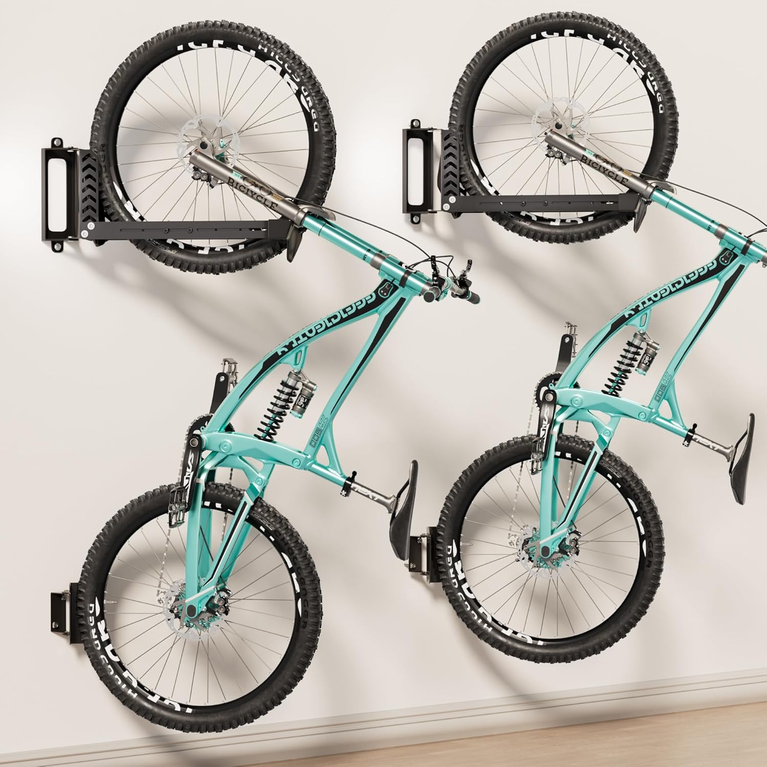 2-Pack Swivel Bike Rack Wall Mount, Bike Hangers for Garage, Space-Saving Vertical Bike Holder, Holds up to 77 lbs, Bicycle Wall Hanger Storage, No Heavy Lifting Required Indoor Hanging Bike Rack