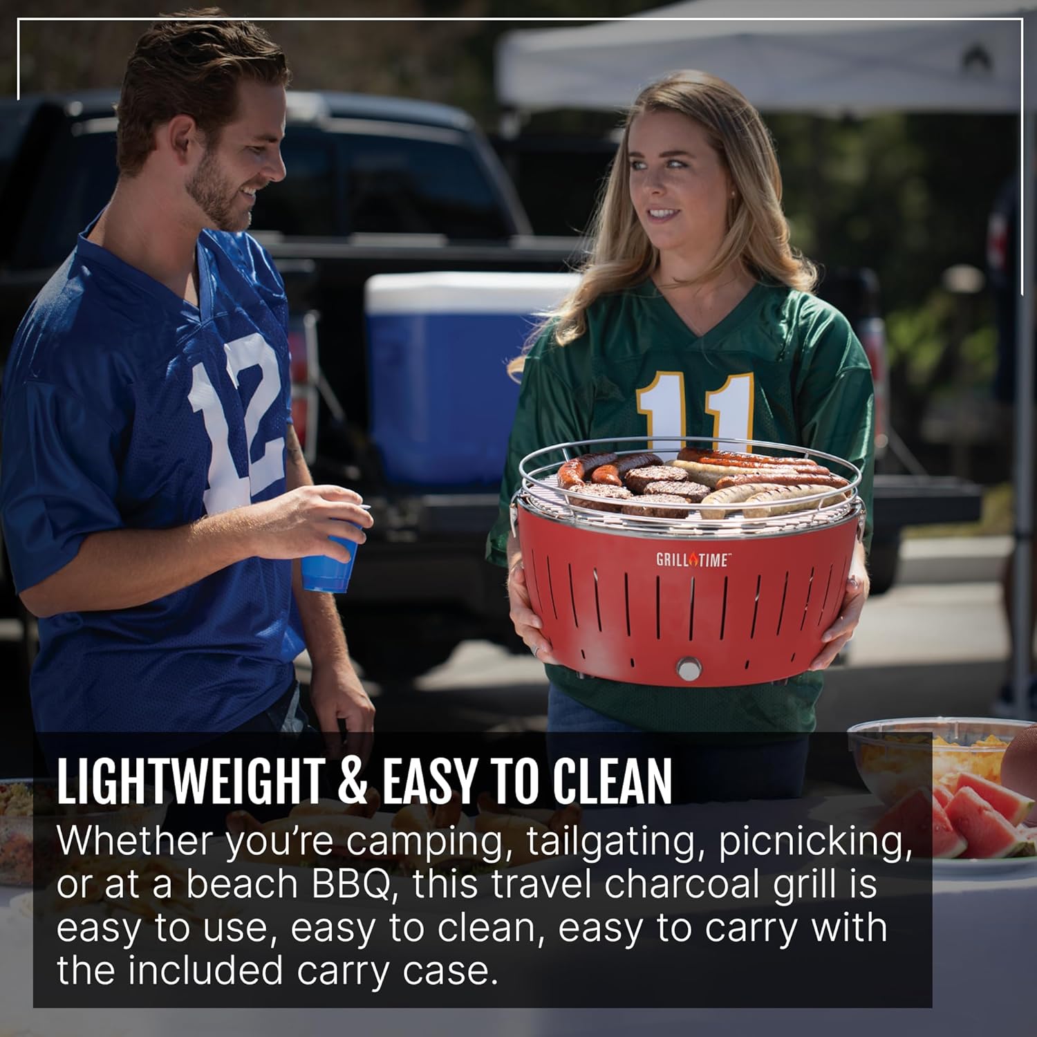 GrillTime Tailgater GTX Portable Charcoal Grill 16 Inch - Smokeless Tabletop Grill for Camping, Tailgate Parties, Beach BBQ, Travel Grey