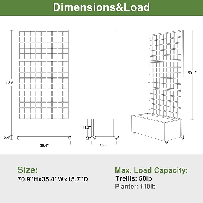 - Space-Efficient Trellis Design: The integrated trellis allows you to grow climbing flowers and vegetables, maximizing vertical space and adding charm to small gardens.