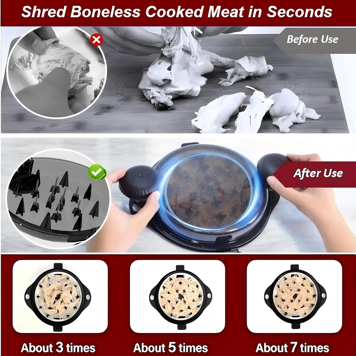 - Engineered for Speed and Durability: Our chicken shredder is upgraded with 304 stainless steel spikes.It shreds cooked chicken 2x faster than plastic spikes