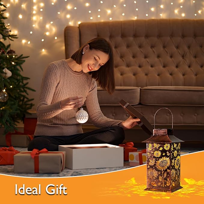 - 【ELEGANT HOLLOW DESIGN】The sunflower solar lanterns boast a vintage-inspired hollow design adorned with intricate patterns. When illuminated, they cast beautiful, realistic patterns onto surrounding surfaces, creating a captivating and enchanting atmosphere