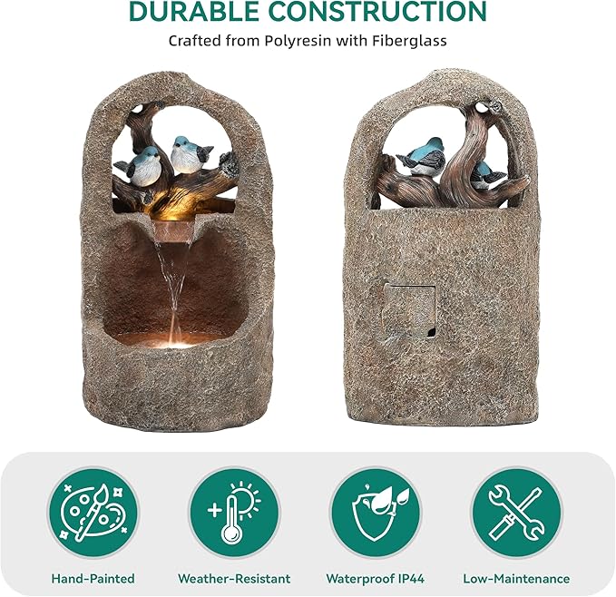 - Weather-Resistant Resin Build: Crafted from premium resin and fiberglass with a hand-painted finish, this outdoor fountain is resistant to weather, rust, and scratches. It delivers long-lasting beauty with minimal maintenance—an ideal accent for your outdoor décor all year round.
