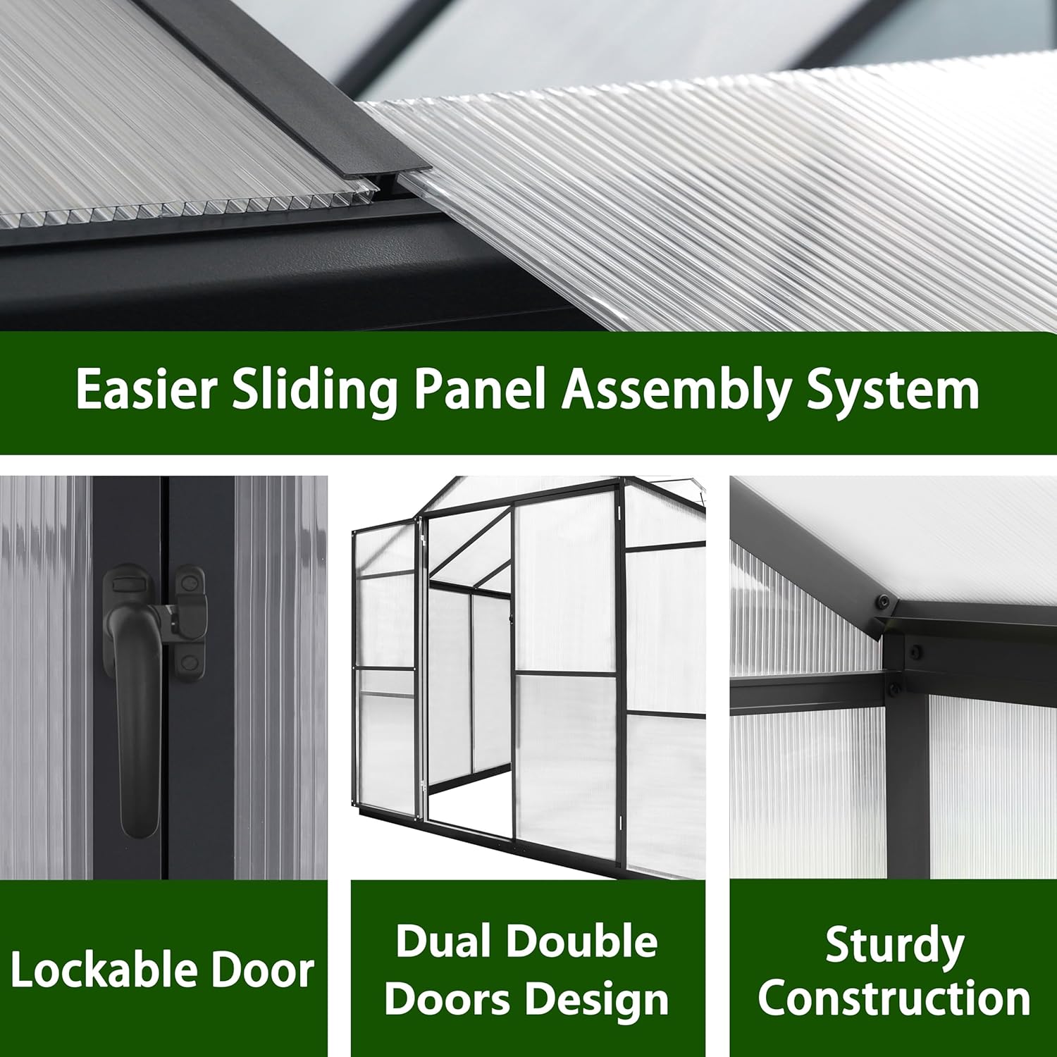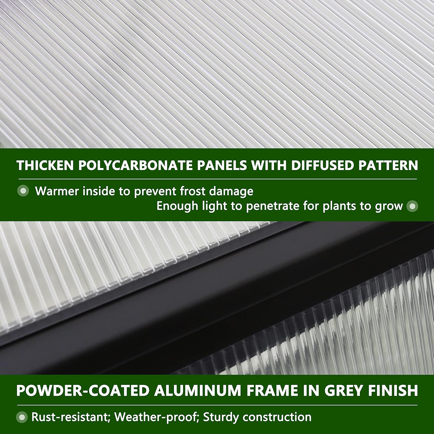 8x8 FT Outdoor Greenhouse Kit, Polycarbonate Aluminum Walk-in Greenhouse with Adjustable Roof Vent and Lockable Door, Backyard Garden in Winter, Gray