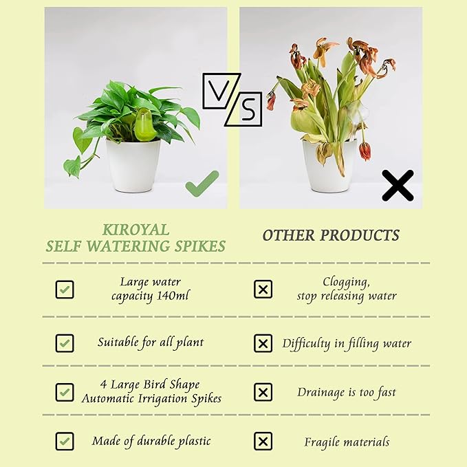 - 【Interesting shape】: KIROYAL self-watering spikes use a bird design shape, which is different from the traditional unsightly irrigation equipment. It adds ornamental value to the potted plants, and also makes children more interested in the cultivation of plants. It is the growth partner of plants.