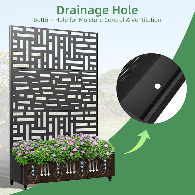 - Effective Drainage System: With a 12-inch deep planting bed and drainage holes, this planter prevents waterlogging, ensuring your plants receive the ideal moisture for healthy growth.