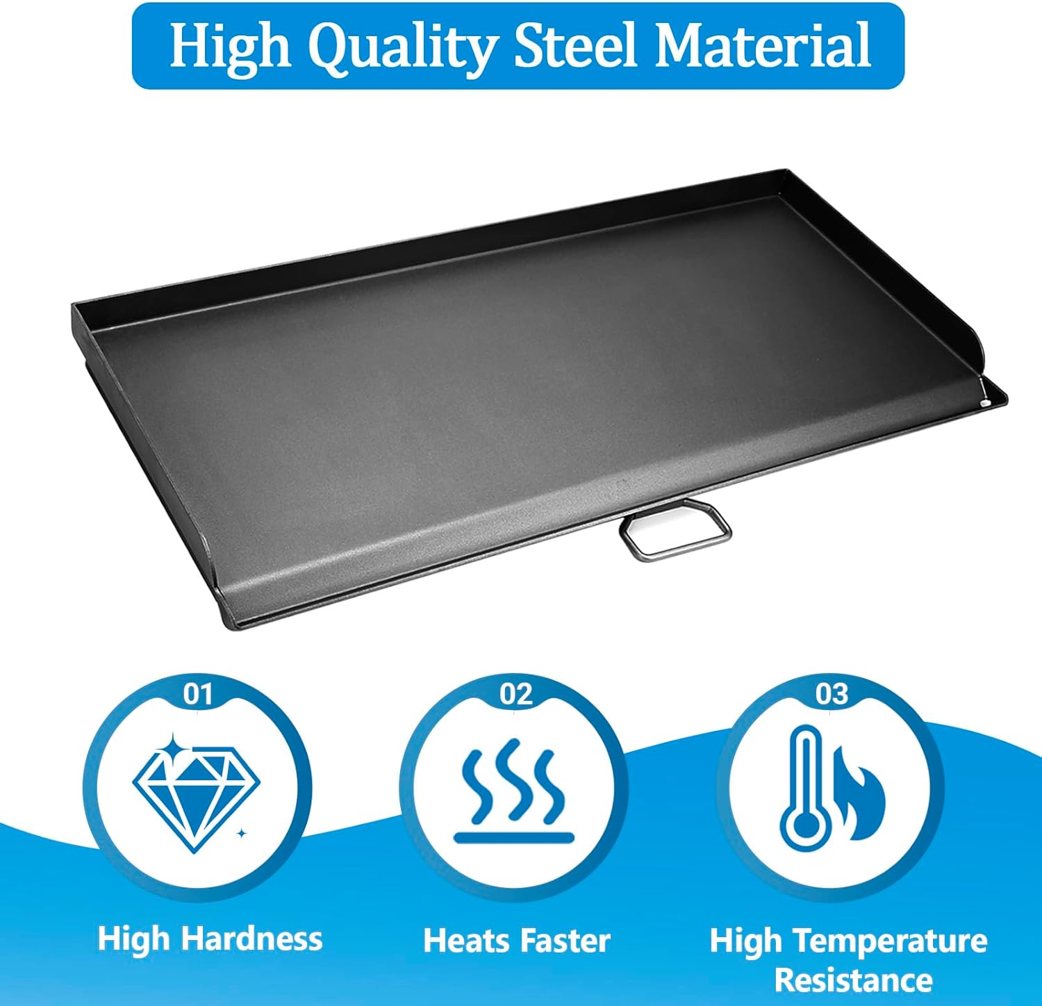 - 【Premium Material】- Made from premium carbon steel with a baked oil coating, this grill accessory delivers rapid, even heat distribution for efficient cooking. Its durable construction resists warping, making it perfect for frequent outdoor grilling. The non-stick surface prevents food from sticking and allows for quick, hassle-free cleanup after every use