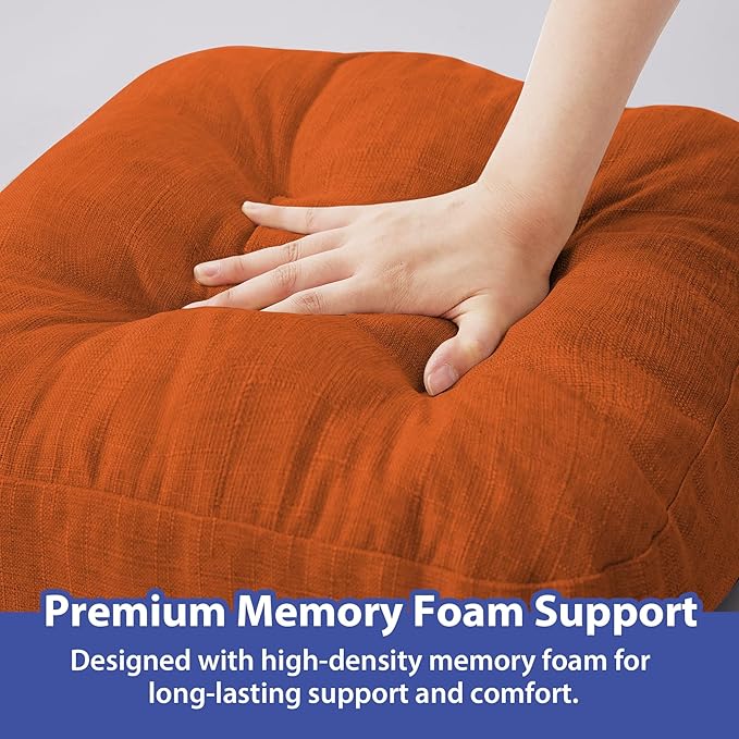 Chair Cushions for Dining Chairs, Dining Chair Cushions, Tufted Indoor Chair Pads with Ties & Non Slip Backing, Seat Cushions for Kitchen Chairs 16.5” x 16.5” x 3.5”, Set of 4, Orange