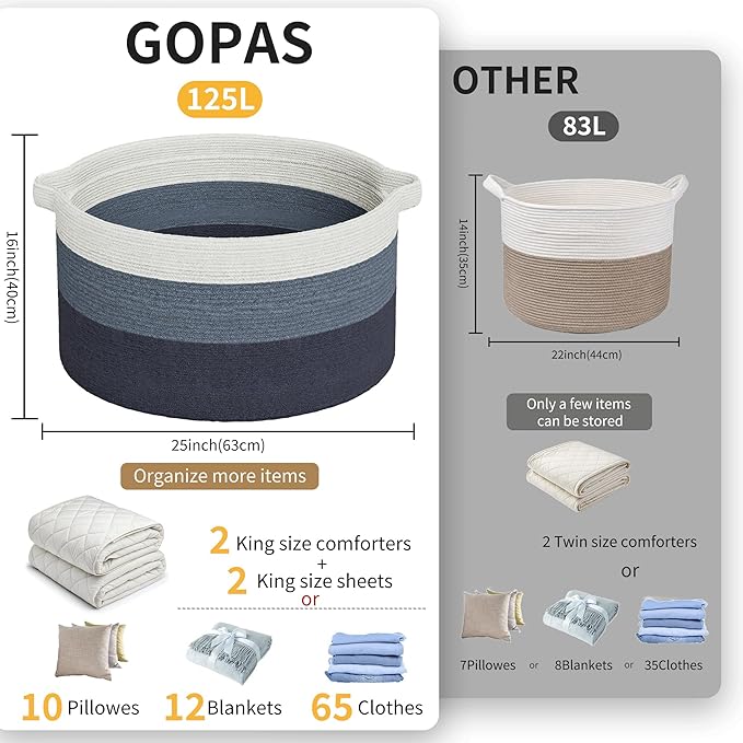 - Extra large Size Multi-Purpose Blankets Basket: 25" x 16", Our Large woven rope basket for storage originally designed as a Blanket storage basket but can be used for more. You can use it as large laundry basket, large storage basket, toy basket for kids, baby toy storage basket bin.Keep in the kids room, family room, or any room in the house that could use extra storage
