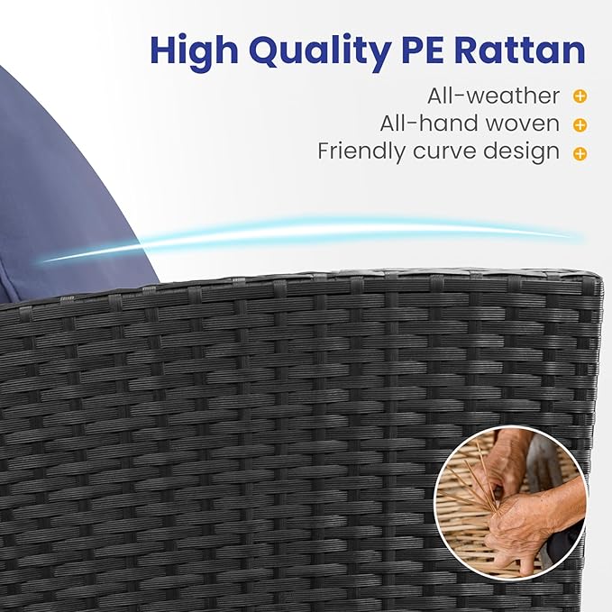 - All-Weather Durability: Built to last,the patio furniture set combines rugged construction with low-maintenance care. The powder-coated steel frame and handwoven PE wicker can spend less time maintaining and more time enjoying your outdoor