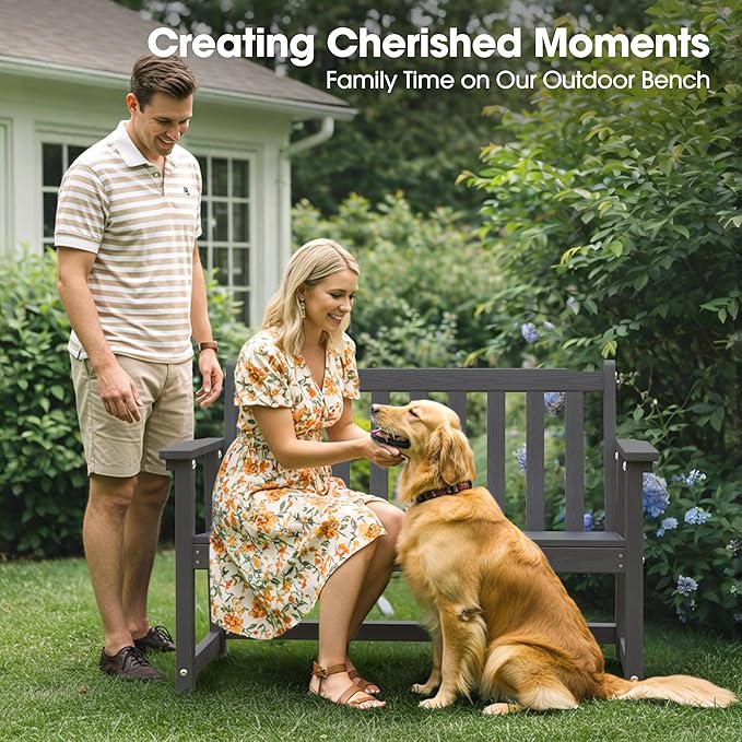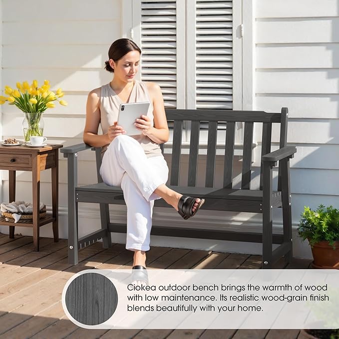 Ciokea 44" Outdoor Bench, HDPE Weatherproof Garden Bench, 2-Person Porch Benches with 550 Lbs, Waterproof Patio Benches for Outside Balcony Deck Backyard, Dark Grey