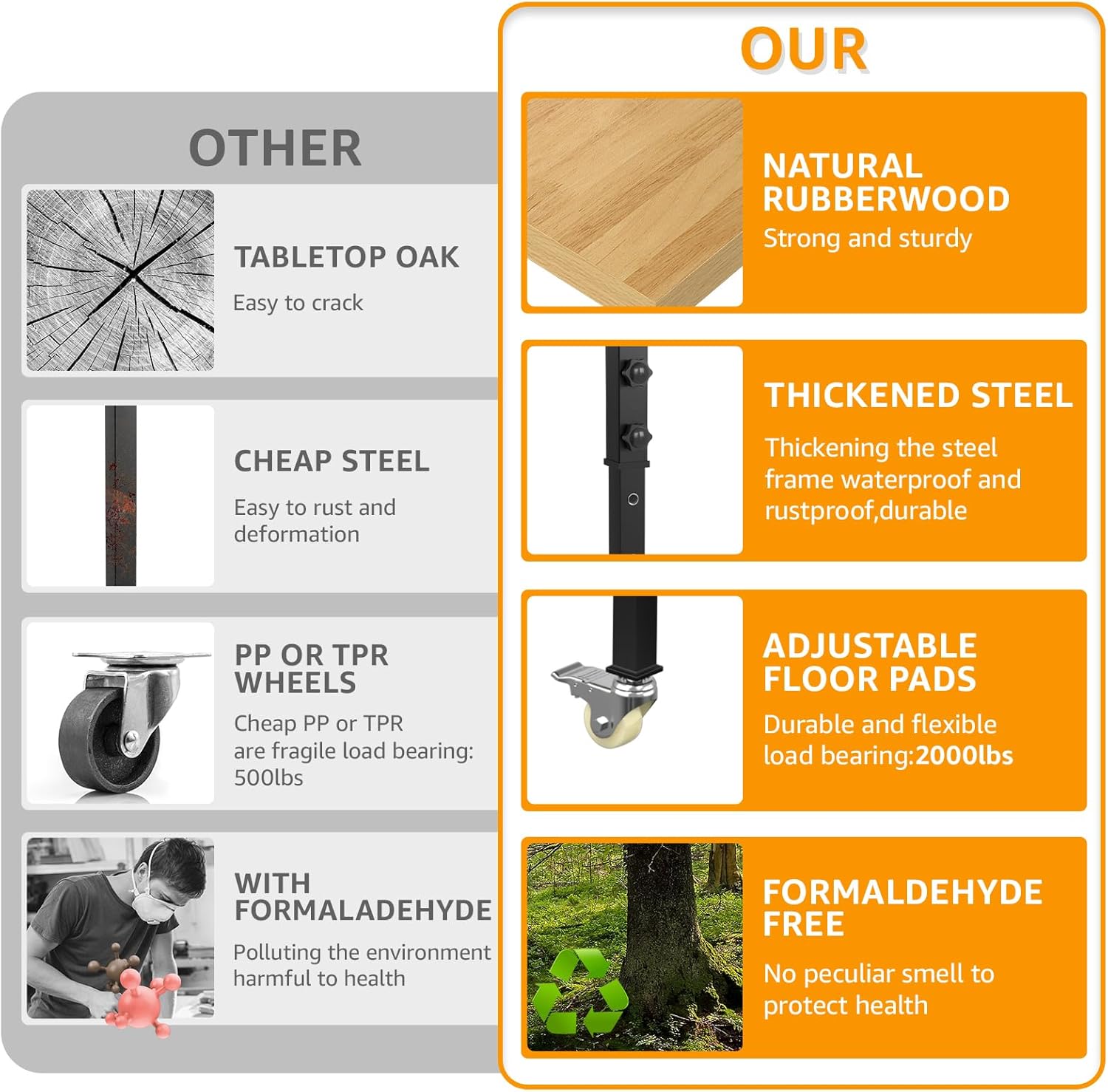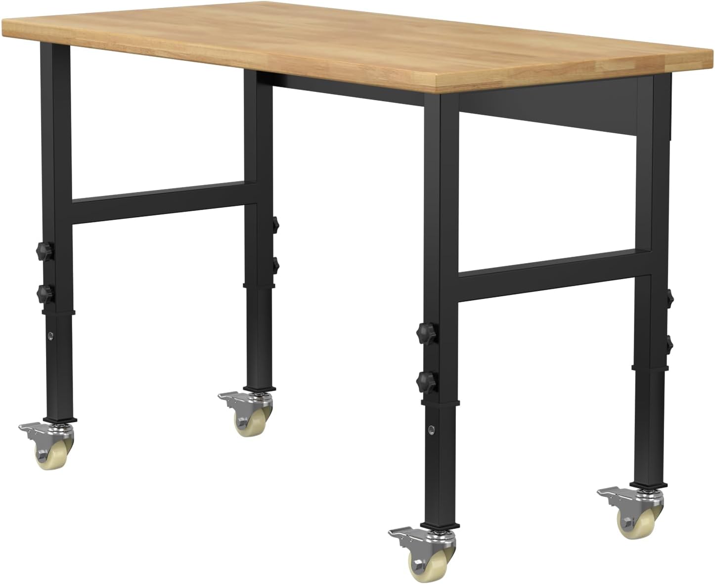 48" Adjustable Workbench,Heavy-Duty Work Table,3000 LBS Load Capacity Hardwood Workstation with Wheels,for Workshop, Garage