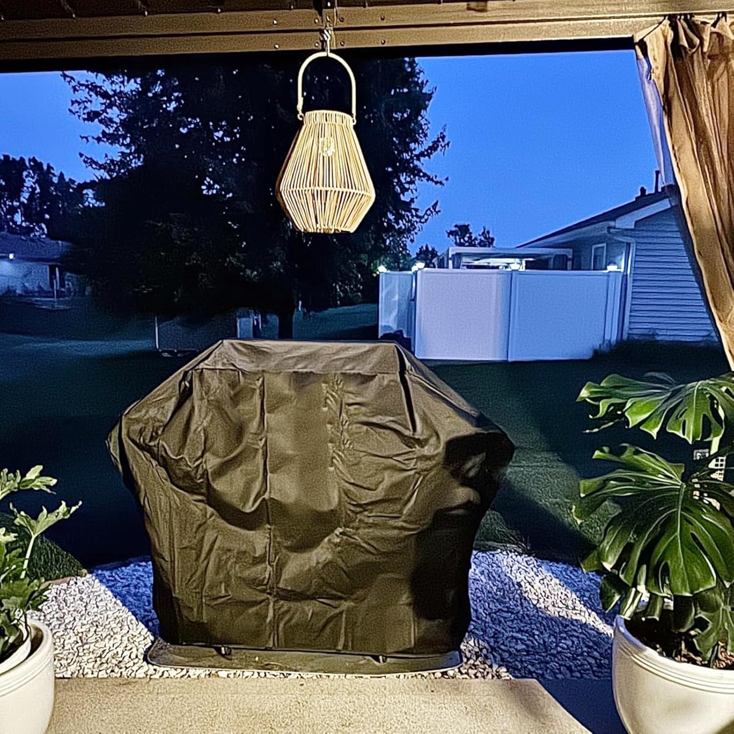 - 600D Oxford Fabric: Outdoor grill cover is made of 600D thickness polyester fabric with black sun fade protective liner, and double stitches sewing. Which is more waterproof, tear resistant and fade resistant