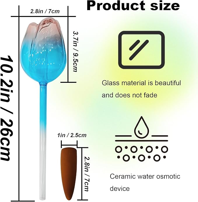 - Decorative & Functional Planter Insert: Tulip-shaped bulbs double as chic decor while hydrating plants. Translucent glass sparkles in sunlight, enhancing indoor windowsills or outdoor patio displays