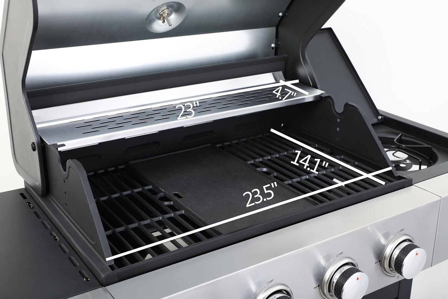 - ๐ฅ Massive 46,790 BTU Output โ Four primary burners + side burner for full meal prep.