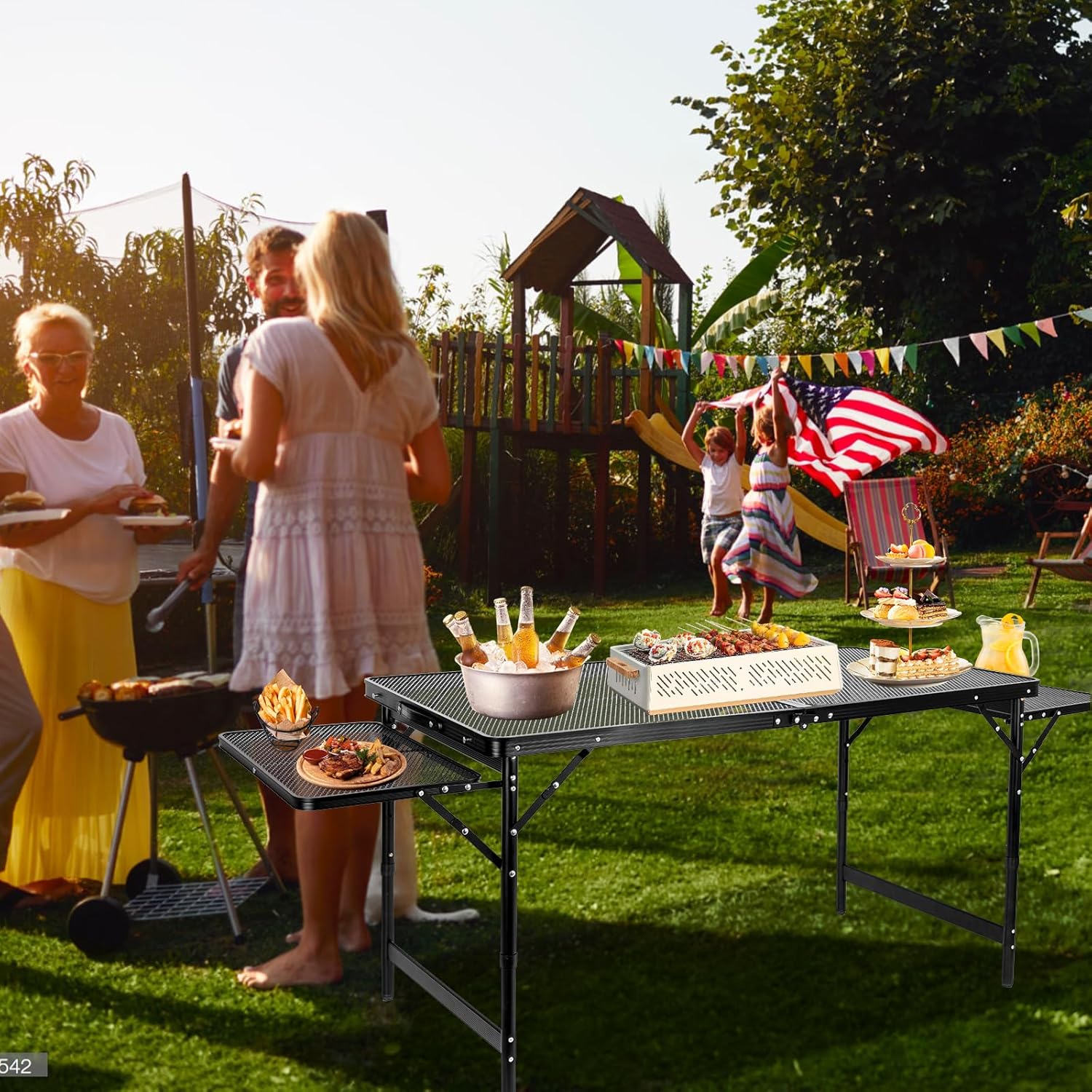 Grill Table Folding Table with 2 Wing Panels 4FT+1.77 FT with with 1×2/5 L Storage Bag Mesh Desktop 3 Height Adjustable Portable Grill for Outdoor Indoor Beach BBQ Picnic Travel RV Black