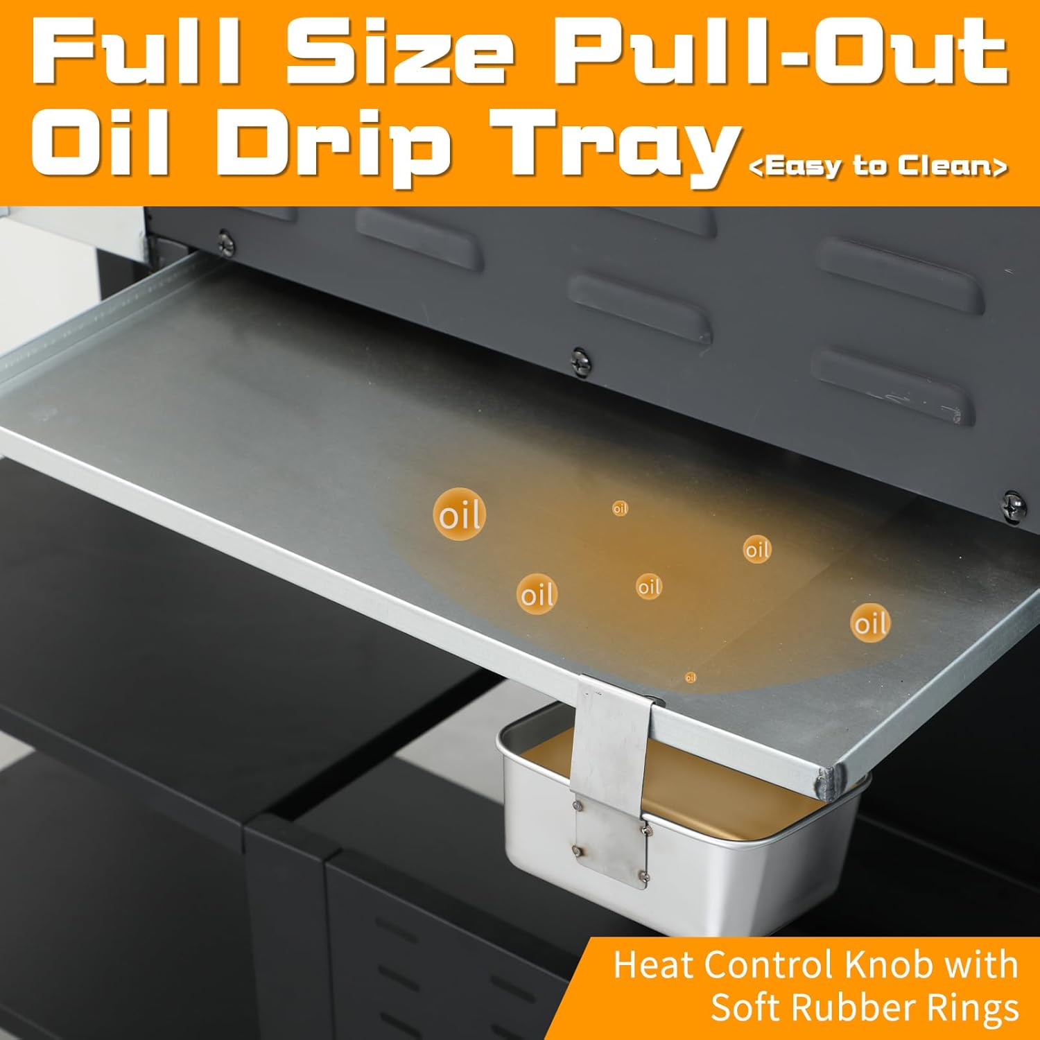 - Professional Multi-Functional BBQ Grill with Space-Saving Design:4 Burner propane gas grill with 2 foldable side tables and each side three hooks,provide extra workspace while conveniently place food,grilling utensils,or small accessories within easy reach,even adding a built-in bottle opener thoughtfully. The pull-out grease tray efficiently captures excess grease,adding a stainless steel removable grease cup,curved design allows oil to drain smoothly into the tray, ensuring optimal flavor retention during cooking while enabling quick and effortless cleanup.