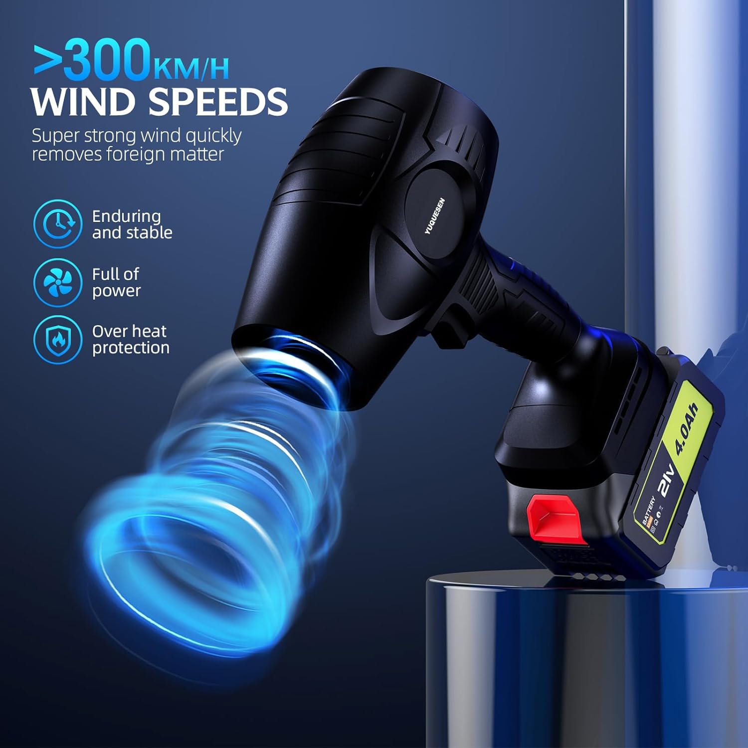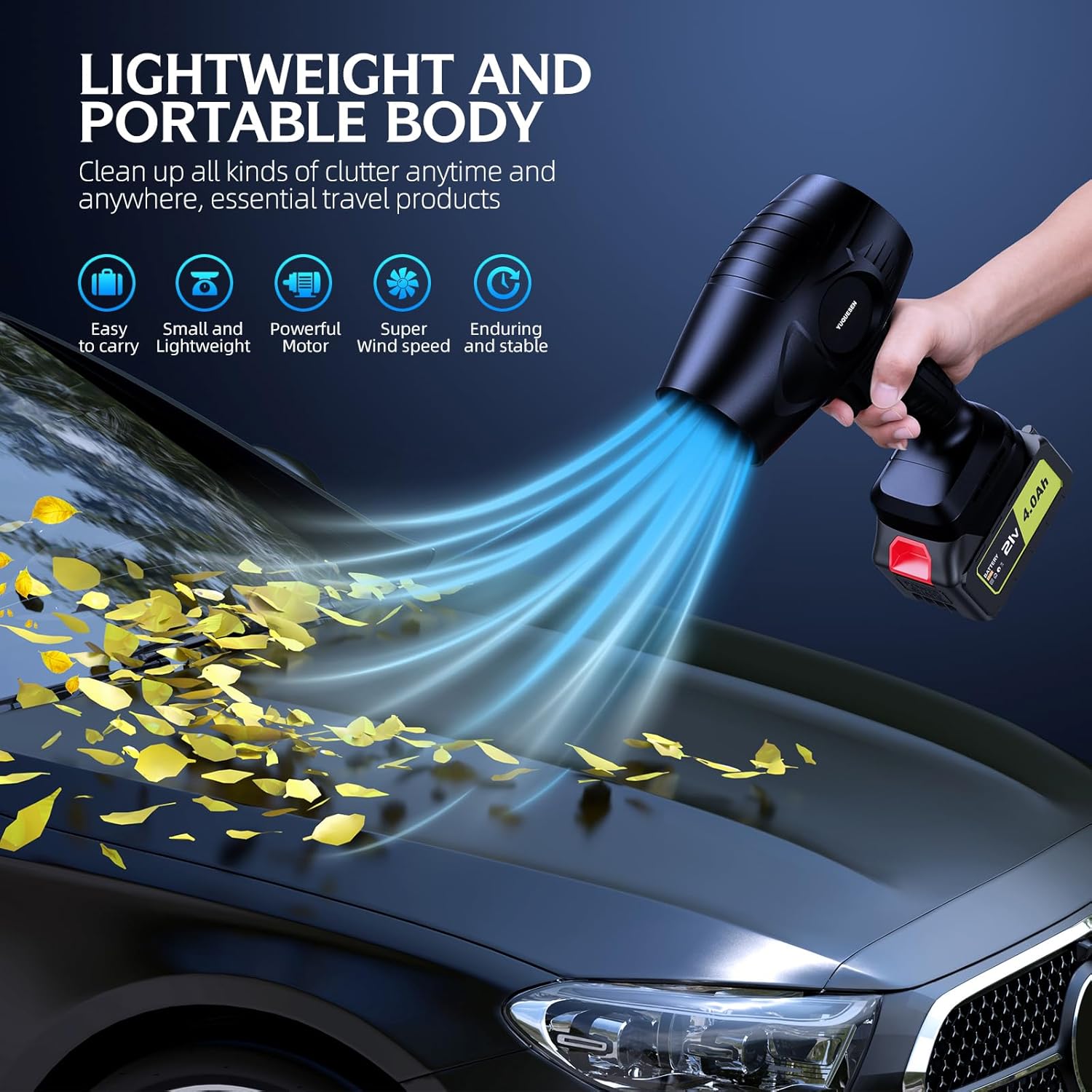 980,000 RPM Cordless Leaf Blower - 21V Electric Handheld Leaf Blower with 2×4.0Ah Batteries & Fast Charger - Lightweight for Patio, Lawn, Yard, Deck Cleaning
