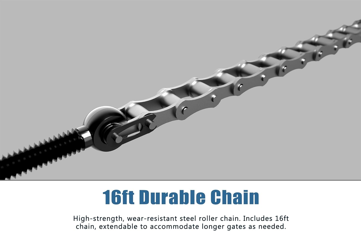 - ⚙️ Compact & Powerful Chain Drive — 130W motor powers sliding gates up to 1100lb with quiet and smooth performance. Comes with 16.4ft heavy-duty chain for easy installation and reliable operation.