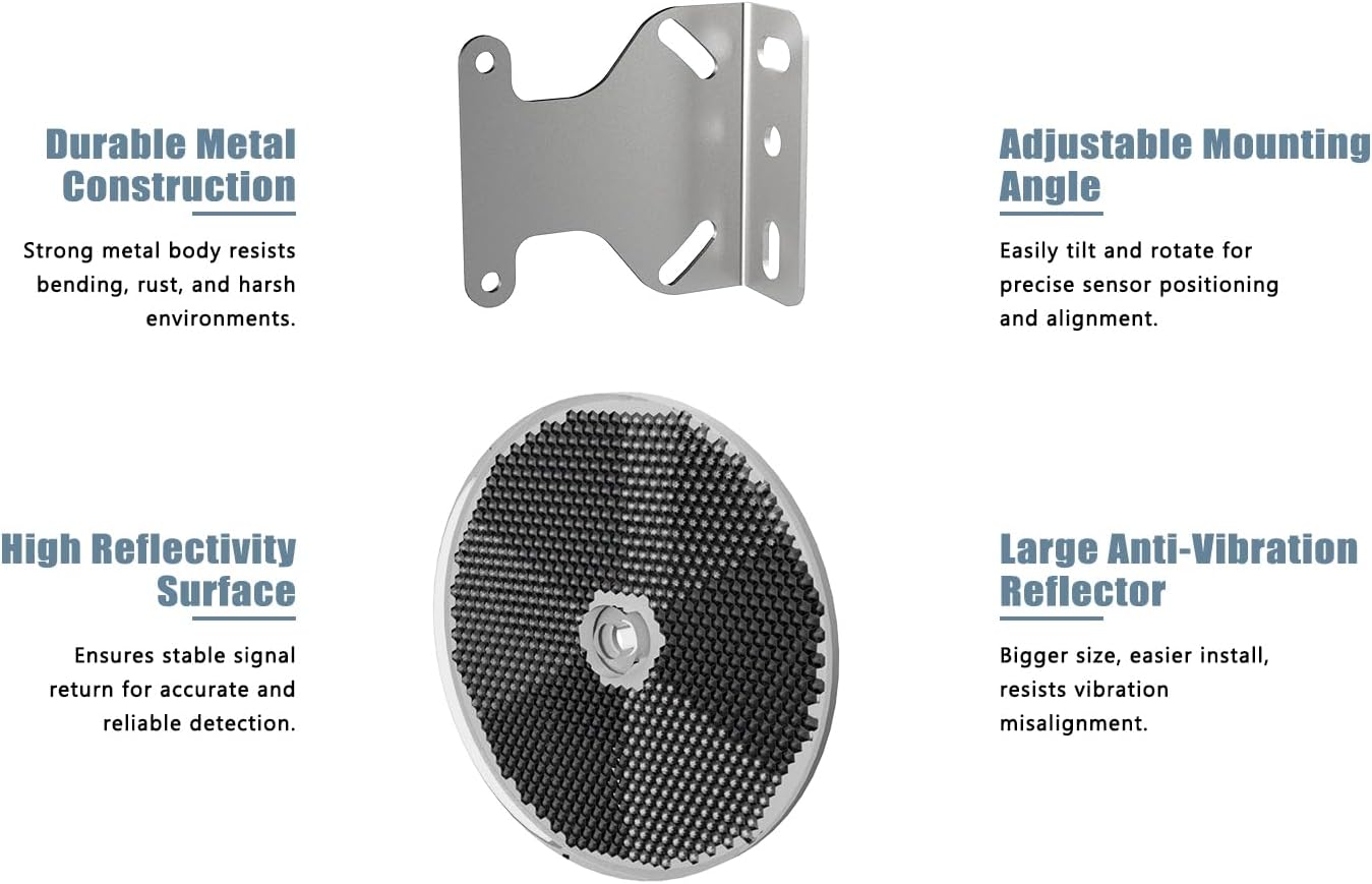 - 🛡️ Visible Red Beam for Effortless Alignment — Retro-reflective photoelectric sensor projects a clearly visible red light beam up to 40ft, allowing fast, accurate setup without tools or guesswork. Reliable obstacle detection even in low-light. Weatherproof IP65-rated ABS housing and impact-resistant acrylic lens ensure durable, year-round performance in harsh environments.