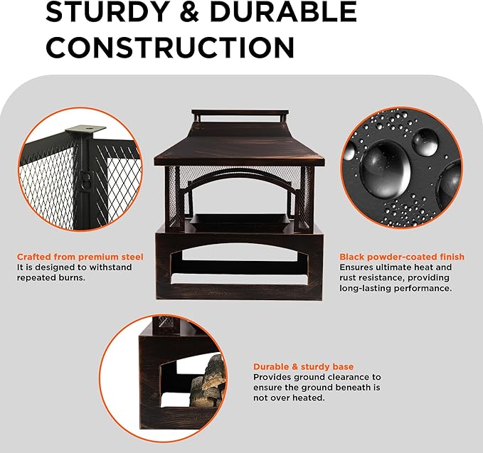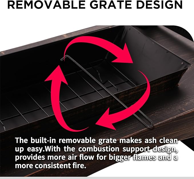 - Practical Accessories Included: Every outdoor fireplace comes with: (1) Poker for log adjustment, (2) Removable ash pan, and (3) Detachable grate. Everything you need for the perfect fire pit for outside wood burning - no extra purchases required.