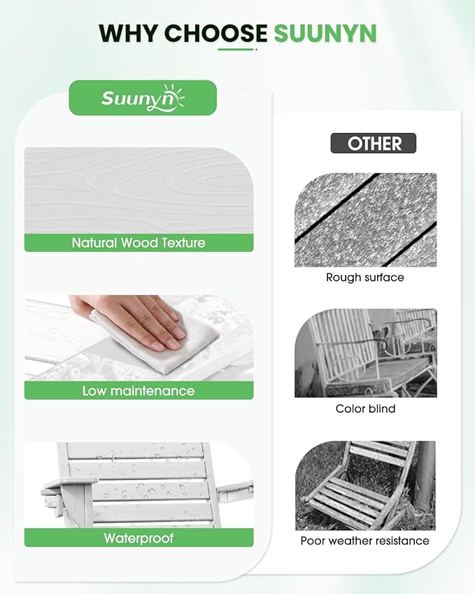 Adirondack Chairs Set of 6, Outdoor Fire Pit Chairs, HDPE All-Weather Adirondack Chairs with Cup Holder, Lawn Chair for Deck, Patio, Garden (White)