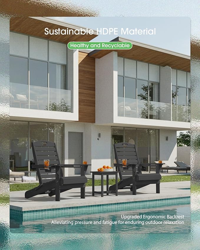 Adirondack Chairs Set of 6, Outdoor Fire Pit Chairs, HDPE All-Weather Adirondack Chairs with Cup Holder, Lawn Chair for Deck, Patio, Garden (Black)